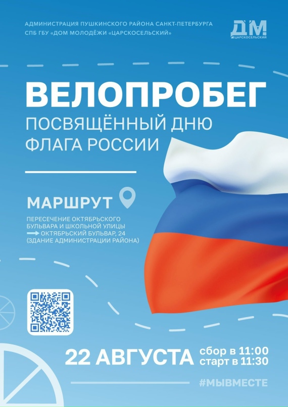 22 августа Дом молодёжи «Царскосельский» проводит велопробег, посвящённый Дню флага России!